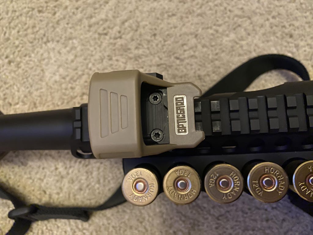 - OpticGard covers may not be compatible with backup sights that are mounted in front of the optic. Sufficient space is needed for the cover to latch onto the optic housing.