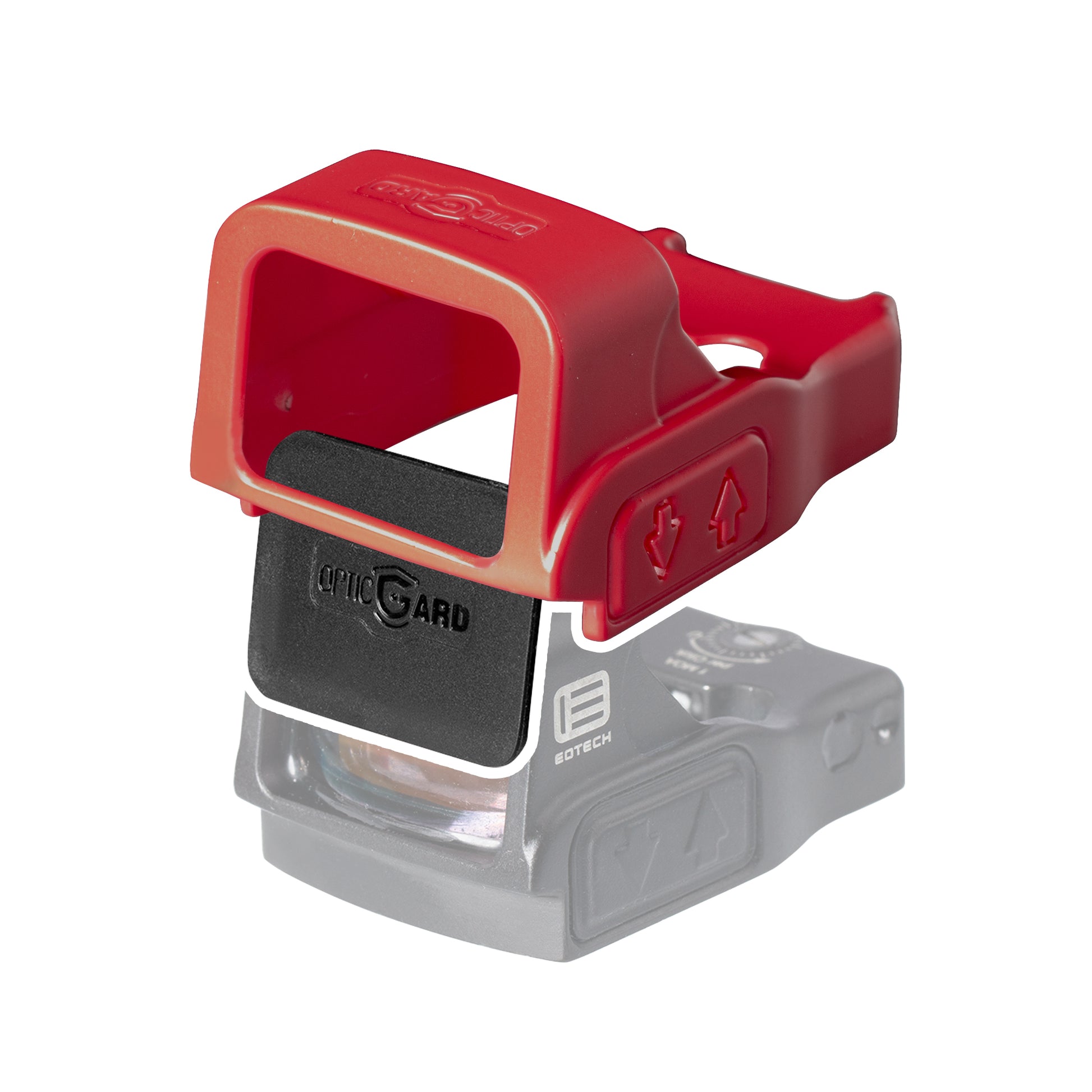 The OpticGard Scope cover for the Eotech® EFLX offers protection against stray casings and scratches. The intelligent cut allows the cover to fit most rear and suppressor sights. It also includes a detachable training lens which will allow you to use the red dot even in the sun or bright areas. Our scope covers are made from a material made from TPU (Thermoplastic Polyurethane) offering protection from abrasion. In addition, the fast and simple installation allows easy access to the buttons without removing the cover. Finally, the interlocking pins secures the cover so it won't fall off even with heavy recoil from handgun slides.